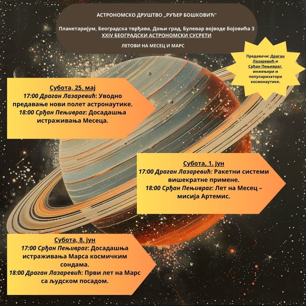 Предавачи су инжењери, популаризатори космонаутике, Драган Лазаревић и Срђан Пењивраг.